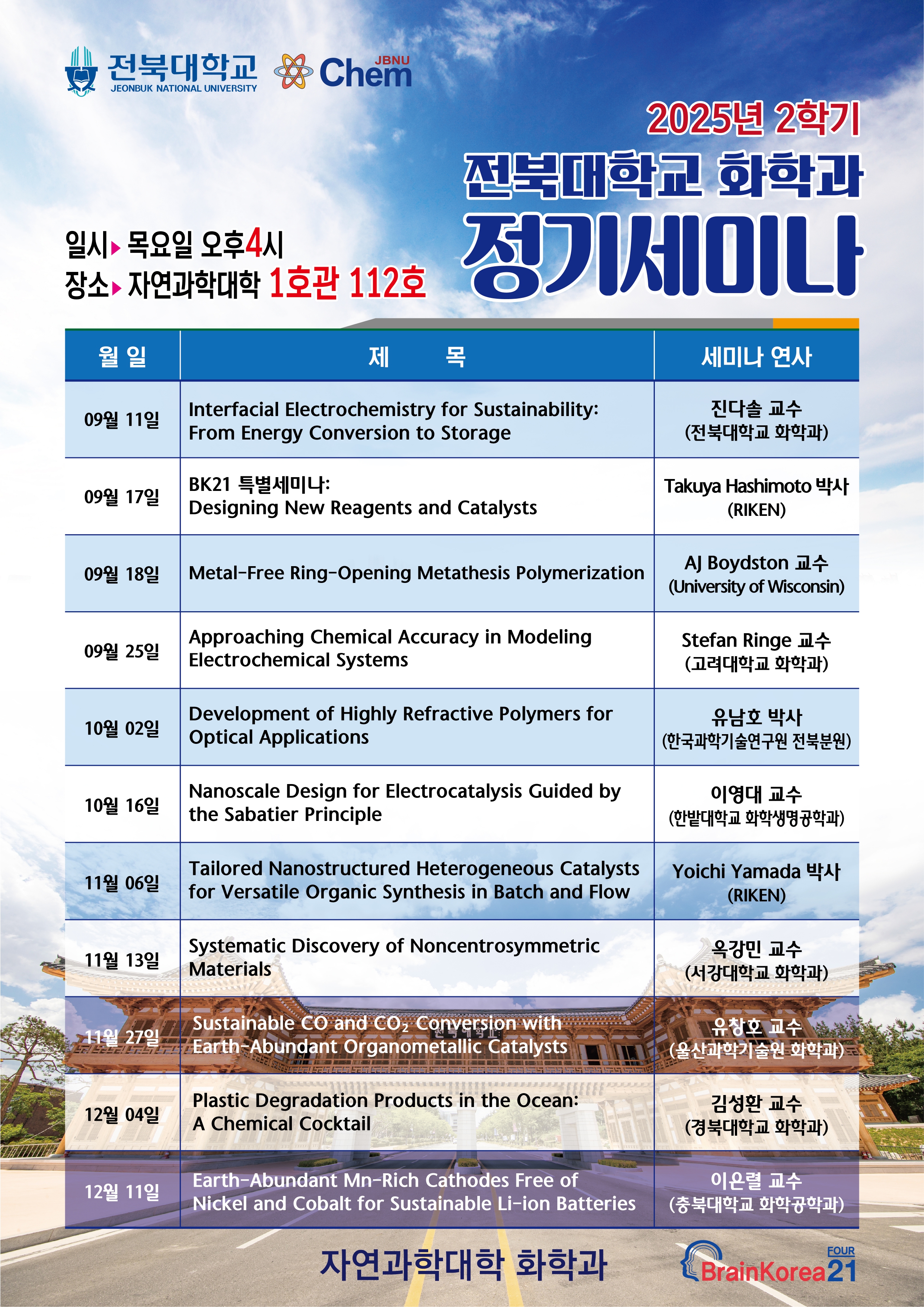 2025학년도 2학기 세미나 일정